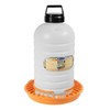 - Features a semi-opaque round jug that provides easy visibility of the water level, with a 7-gallon capacity to keep your flock hydrated.
