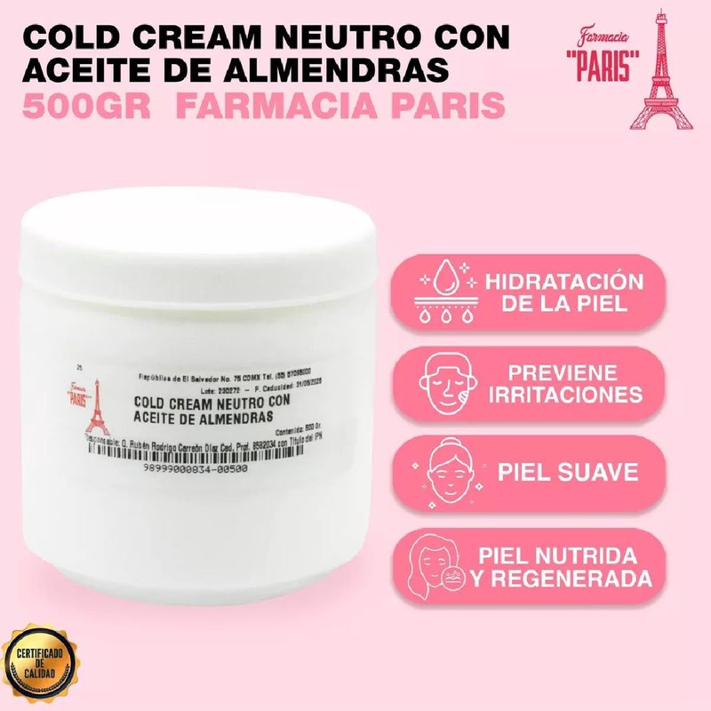 Farmacias PARIS | Cold Cream Neutro con Aceite de Almendras (500 gr)
