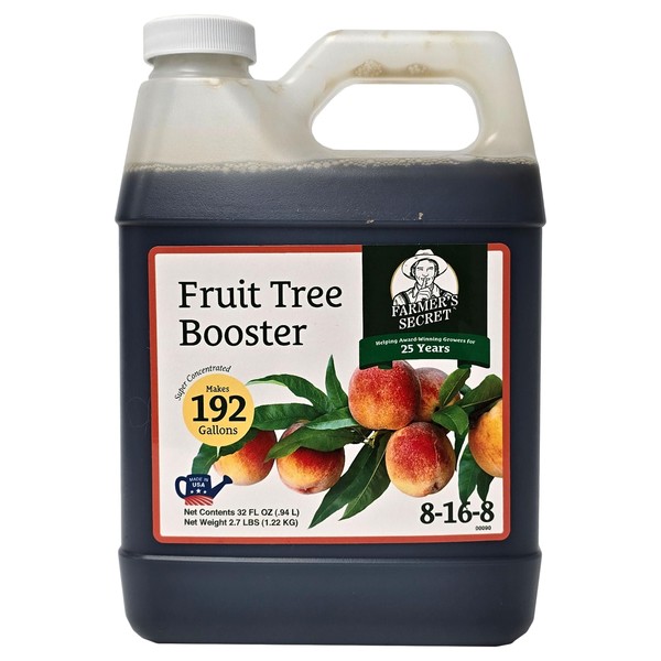 Farmer's Secret Fruit Tree Booster Fertilizer (32oz) - Super Concentrated and Phosphorus Rich - Formulated for All Fruit Trees Including Peach, Banana, and Apple