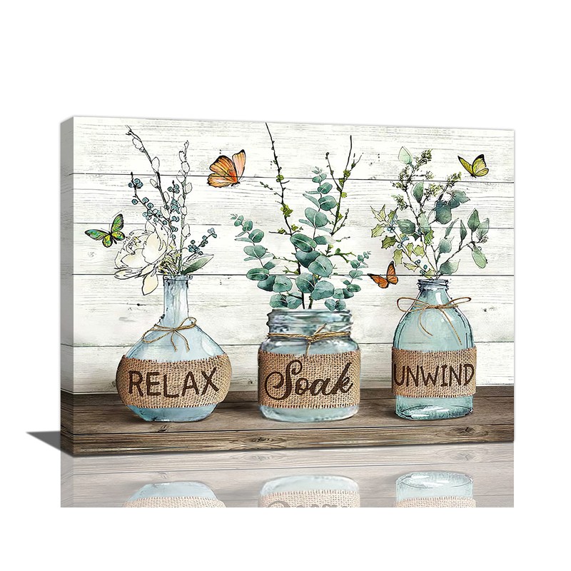 Farmhouse Bathroom Decor Wall Art Rustic Botanical Bathroom Pictures Canvas Print Bathroom Relax Soak Unwind Eucalyptus Butterfly Painting Prints Framed Artwork Decor for Bathroom 12"x16"