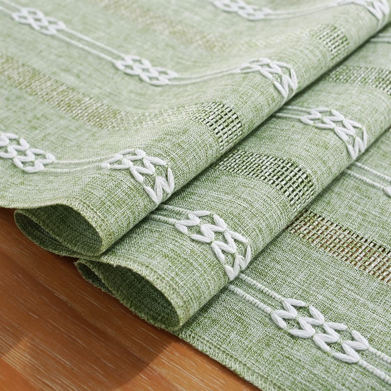 - UNIQUE HEMSTITCHED DESIGN: This table runner is designed with a double stripe embroidered hollow out pattern; Add a touch of sophistication to your dining space while perfectly blending in alongside the vintage farmhouse style decorative.