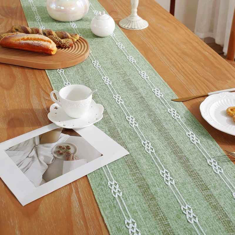 - PREMIUM MATERIALS: Our table runners are crafted from cotton and polyester heathered woven fabric, simple striped embroidered and delicate touch of linen which gives it a luxurious and chic charm of the dining table.