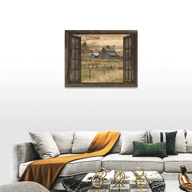 Farmhouse Old Barn Wall Art Western Landscape Pictures Wall Decor Rustic Country Barn Canvas Print Painting Framed Modern Home Artwork Decorations For Bathroom Bedroom Office Kitchen 12"x16"