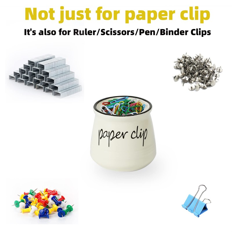 - CERAMIC MATERIAL: This paper clip holder is made of ceramic.The surface is smooth and translucent , which is easy to clean.It can be washed in the dishwasher
