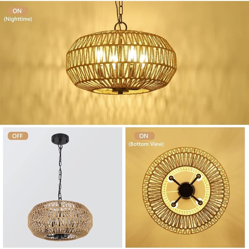 Farmhouse Rattan Pendant Lights - 4-Light Boho Chandelier Fixture, Wicker Hand Woven Basket Pendant Hanging Light for Dining Room, Living Room, Kitchen Island