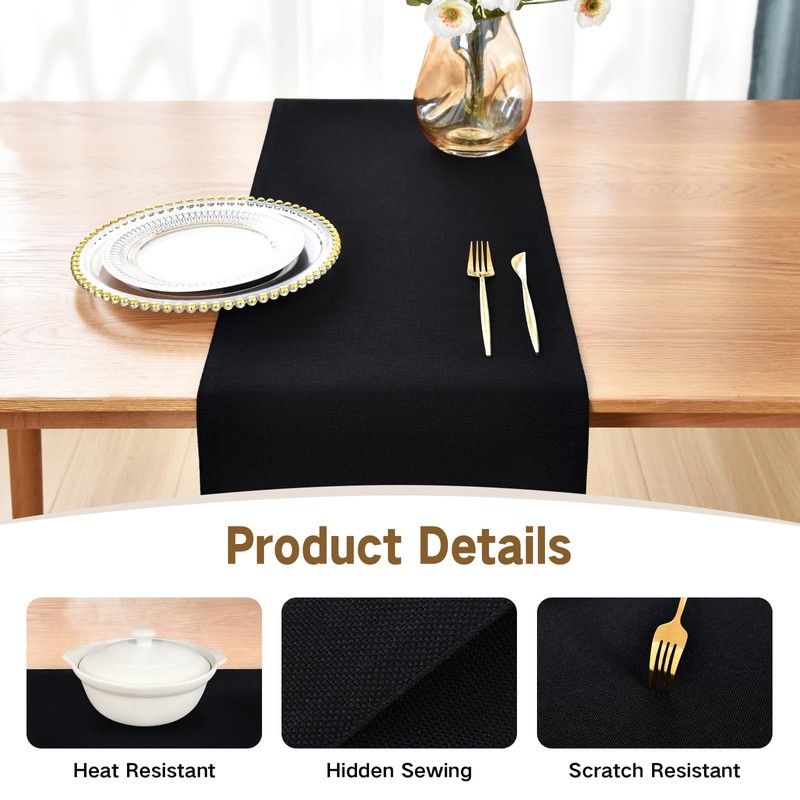 This faux linen table runner is reversible, thick and heat resistance, the highest temperature it can endure reaches 248°F(120°C). Therefore, the table runner does a good job to protect your table top from hot dishes, stains and scratches.