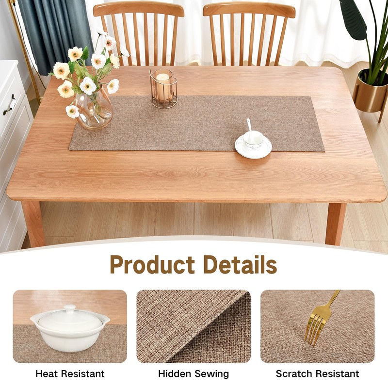 This faux linen table runner is reversible, thick and heat resistance, the highest temperature it can endure reaches 248°F(120°C). Therefore, the table runner does a good job to protect your table top from hot dishes, stains and scratches.