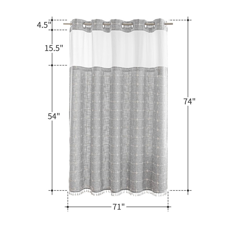 - [Mesh Top]: The modern farmhouse shower curtain with sheer window lets in natural light, brightens the bathroom, and expands the shower area.