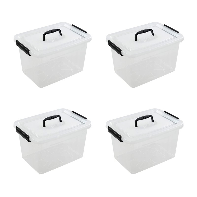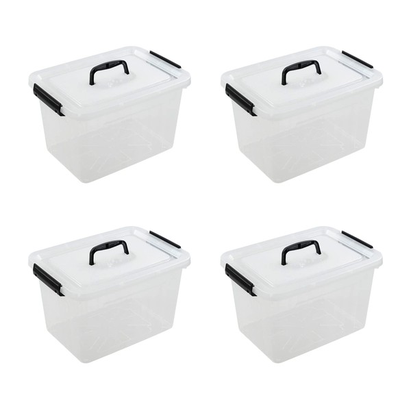 Farmoon 12 Quart Clear Storage Bin, Plastic Latching Box with Handle, 4 Packs