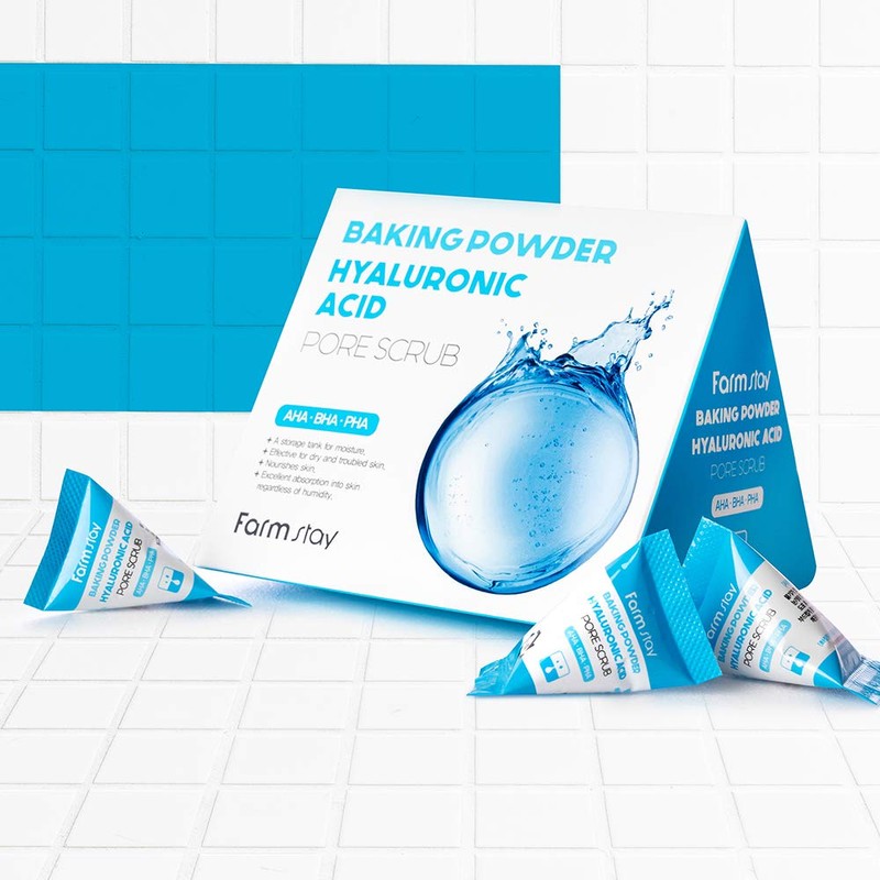 FARMSTAY BAKING POWDER HYALURONIC ACID PORE SCRUB - Soft Exfoliation - Pore Cleansing - AHA,BHA,PHA - 7g X 25pcs