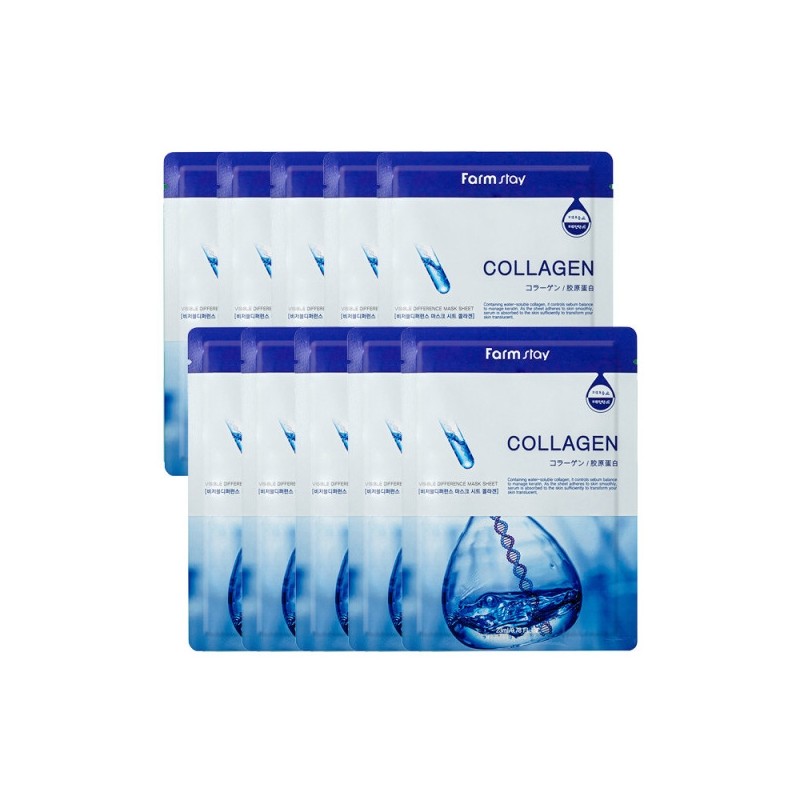 Farmstay Visible Difference Mask Pack Collagen 10 Sheets / 팜스테이 비저블 디퍼런스 마스크팩 콜라겐 10매