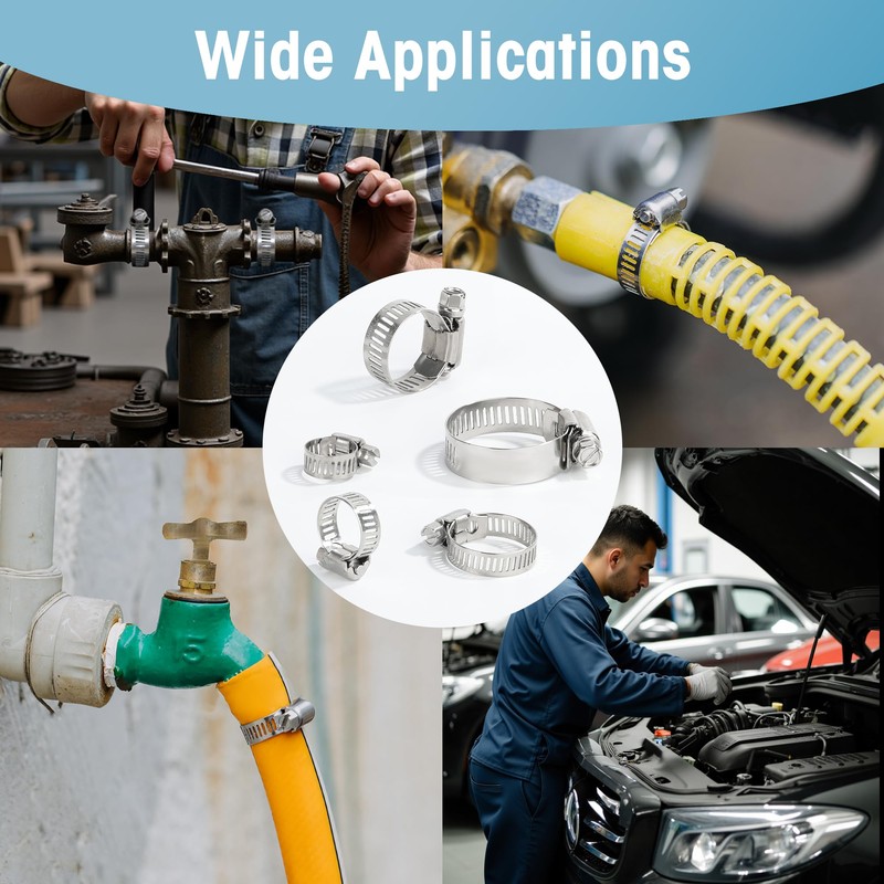 - Versatile: The adjustable hose clamps are designed specifically for securing pipes in a variety of settings including plumbing, home repairs, automotive, industrial etc. These clamps provide a strong and secure grip to prevent leaks and ensure optimal performance