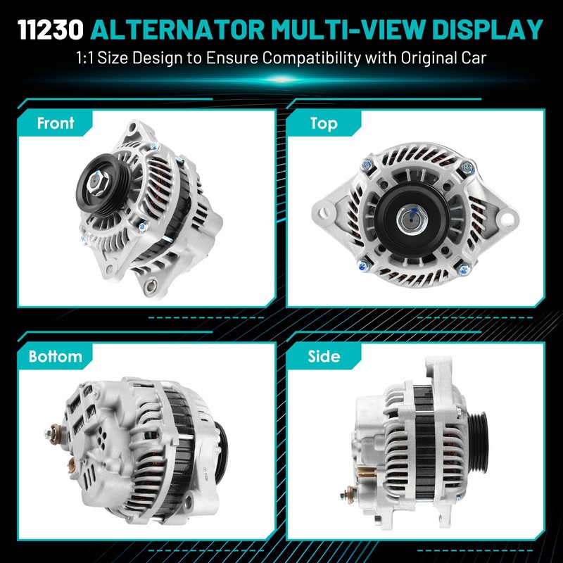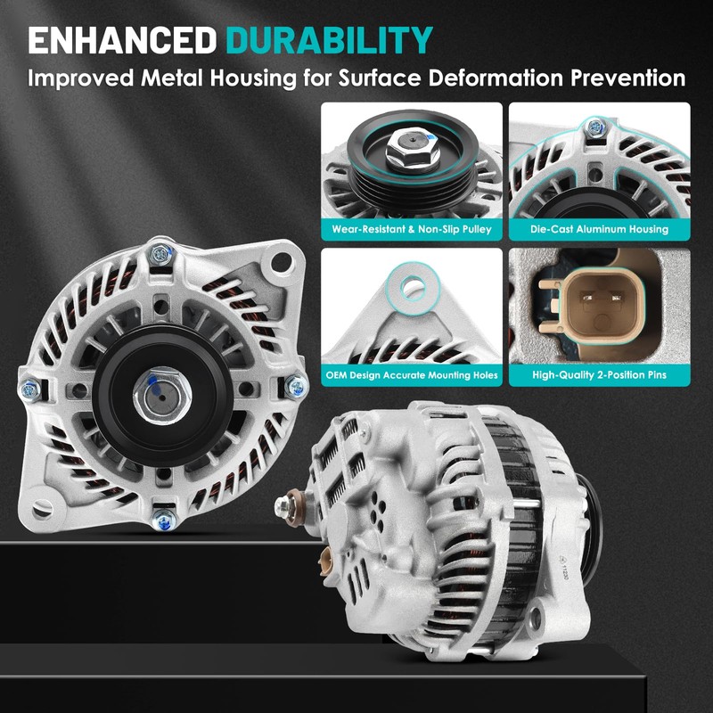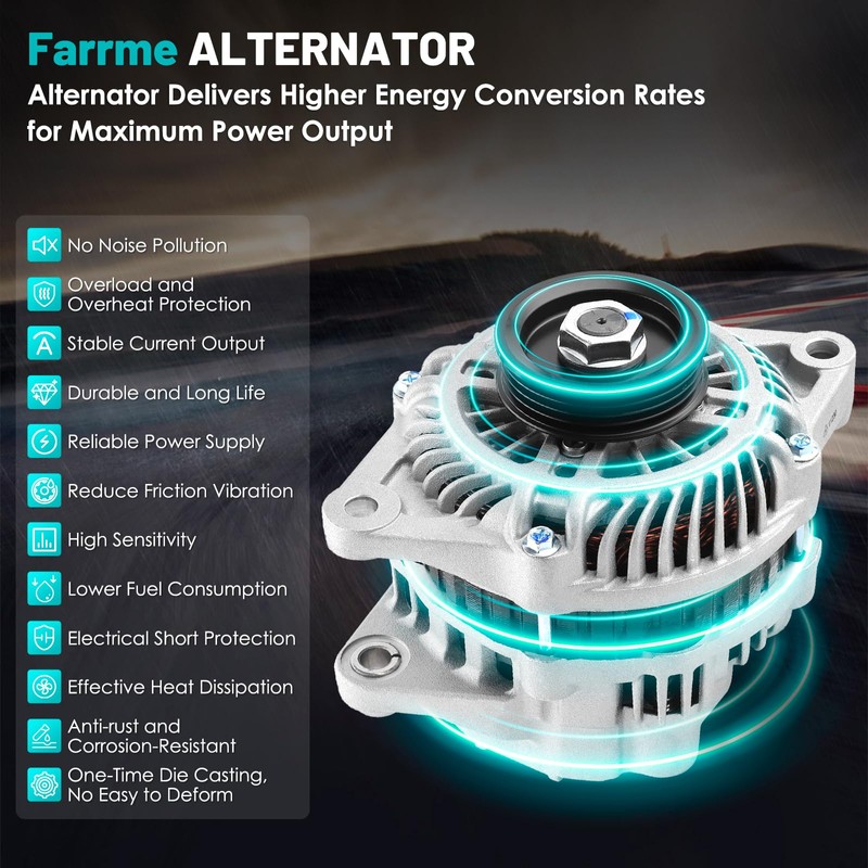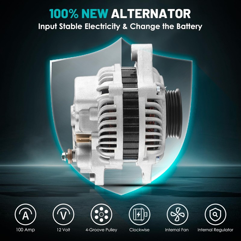 - 【Durable Construction】High Output Alternator is constructed using premium materials, including precision CNC machining castings, Die-cast aluminum alternator, Pure copper winding, external insulating coating to ensure exceptional resistance to heat, vibration, and corrosion. Whether you're driving through rough terrains or facing extreme temperatures, this 100% NEW Alternator provides consistent and strong power output, If there is excess power, the power storage system will be fully utilized.