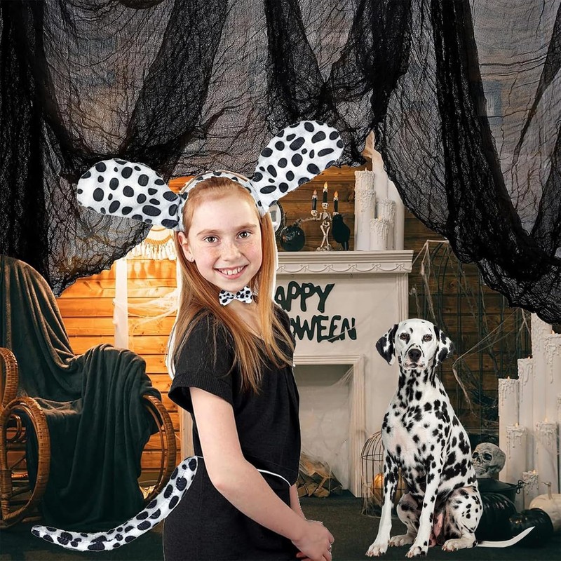 - Dalmatian costume for children or adults with Dalmatian ears, bow tie and tail. Perfect for carnival, costume parties or animal themed events. Complete with all accessories for a fun and unique look.