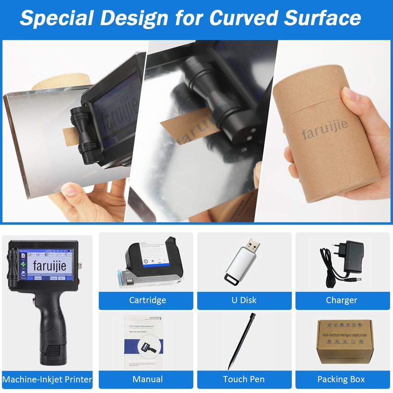 faruijie Handheld Inkjet Printer with 4.3Inch Touch Screen Printing Height 0.5" & 45MM/S Printing Speed for Batch Number Barcode Text Logo QR Code Luxury Wishing Artifact(Support 25 Languages)