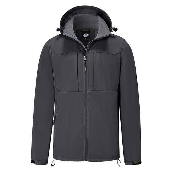 FARVALUE Men's Hooded Softshell Jacket Water Resistant Lightweight Insulated Fleece Lined Windbreaker Grey X-Large