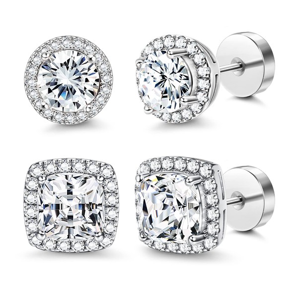 - SCREW BACK DESIGN: The halo stud earrings and square stud earrings have 7mm screw on flat back, which is more comfortable and convenient, perfect for sleeping in, and also have a firmly stay to wear.