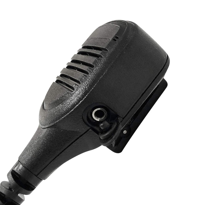 The shoulder speaker mic is heavy duty and easy to operate while wearing gloves in a more rugged environment.