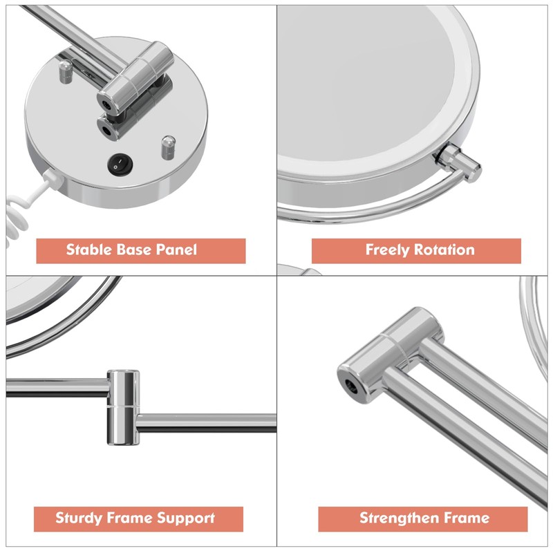 - ๐๐๐ยฐ ๐๐ฐ๐ข๐ฏ๐๐ฅ ๐๐ฑ๐ญ๐๐ง๐๐๐๐ฅ๐ ๐๐ข๐ซ๐ซ๐จ๐ซ๐ฆพ The magnifying mirror with light rotates 360 degrees, and the extended arm can extend up to 18.5 inches out to choose the perfect angle at will. Ideal wall mount mirror with extension arm for makeup application, shaving and wearing contact lenses, etc. Retracts when not in use will free up precious space and add a touch of style to your daily rituals.