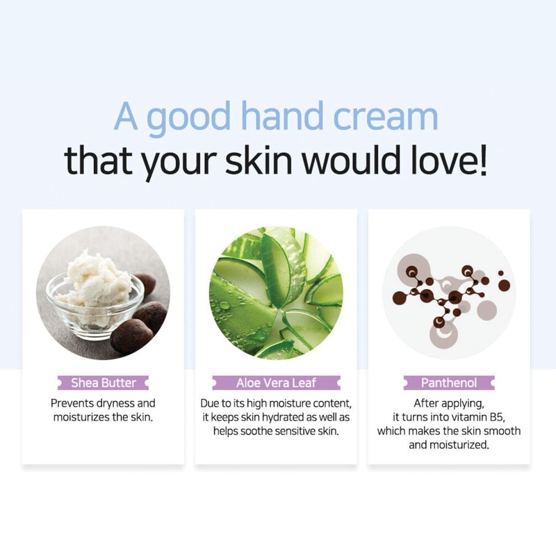 - HAND MOISTURIZER WITH HEALTHY INGREDIENTS: Formulated with Shea Butter that prevents moisture evaporation, it will make the hands smooth and soft. The Aloe Vera Leaf extract will hydrate and soothe the skin, and Panthenol, also known as a "Moisture Magnet" for its quick absorption into the skin and nurturing characteristics.