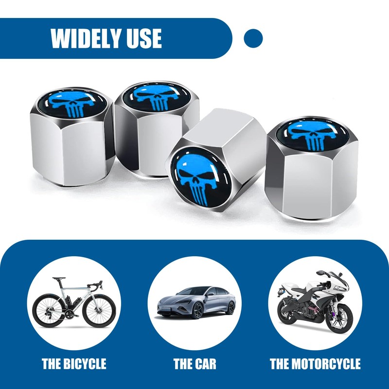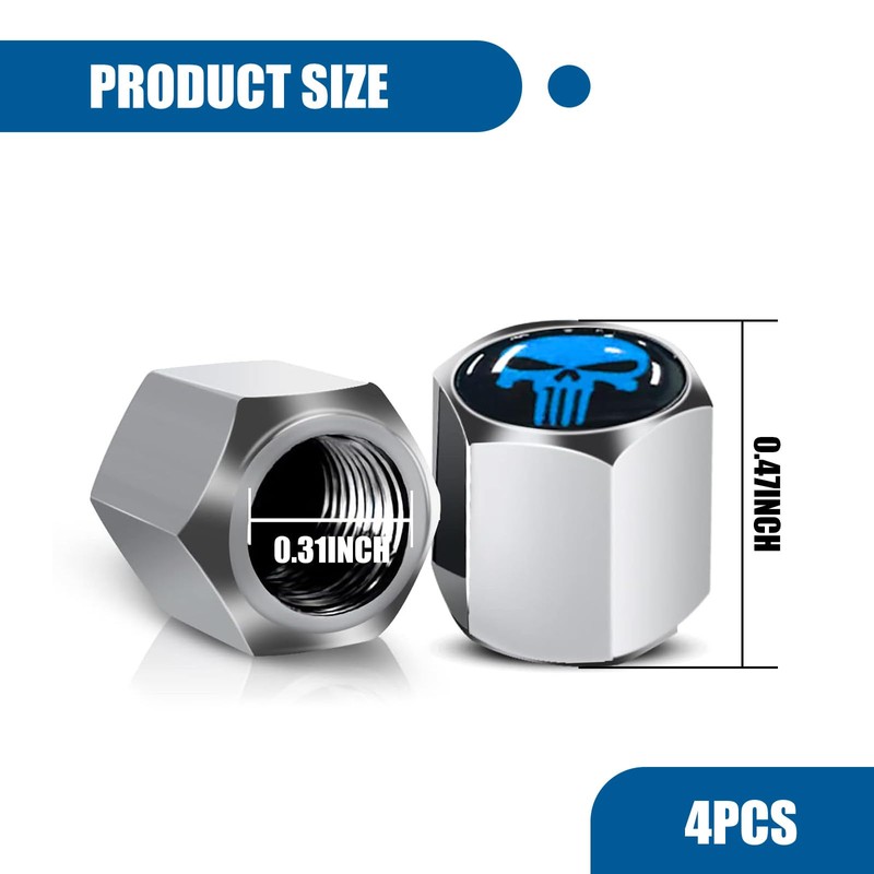 fasebeek 4 PCS Car Tire Valve Stem Caps, Skull Dust Proof Covers, 0.31" Vehicle Decor, Universal for Most Cars (Blue)