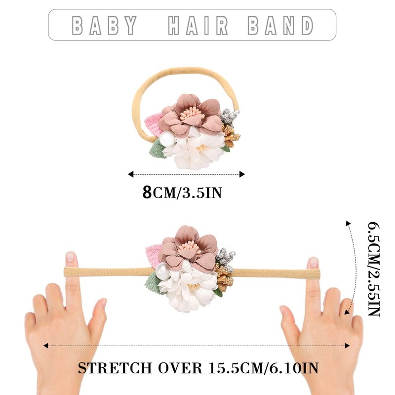 - Size: flower bead headbands fit most 0-3 years old girls. About 30-50 cm. Soft nylon fabric with super elasticity that does not easily leave marks on your little girl's heads.