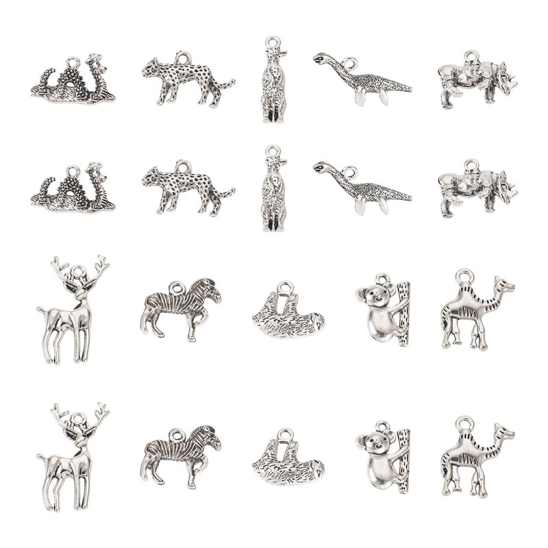 - Package Included: 50 pieces animal charms for bracelets, 10 styles, 5 pieces / style. About 9.5 - 27 mm long, 7.5 - 25.5 mm wide, 3.5 - 7 mm thick, hole: 1.6 - 2.5 mm