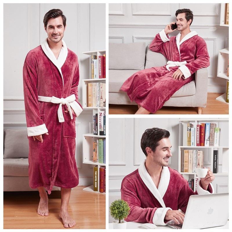 - 【Mid-Length Mens Plush Bathrobe】FashGudim plush robe for men is made of 100% polyester. The neckline, cuff and belt designed with contrast color trim which makes this men's plush robes look more eye-catching. The length of this soft men's fleece robe range between 47.5 and 51 inches,which can insulate your body from the winter chill, while wrapping you in incredible softness,it is perfect for snuggling before bedtime or lounging around the house.