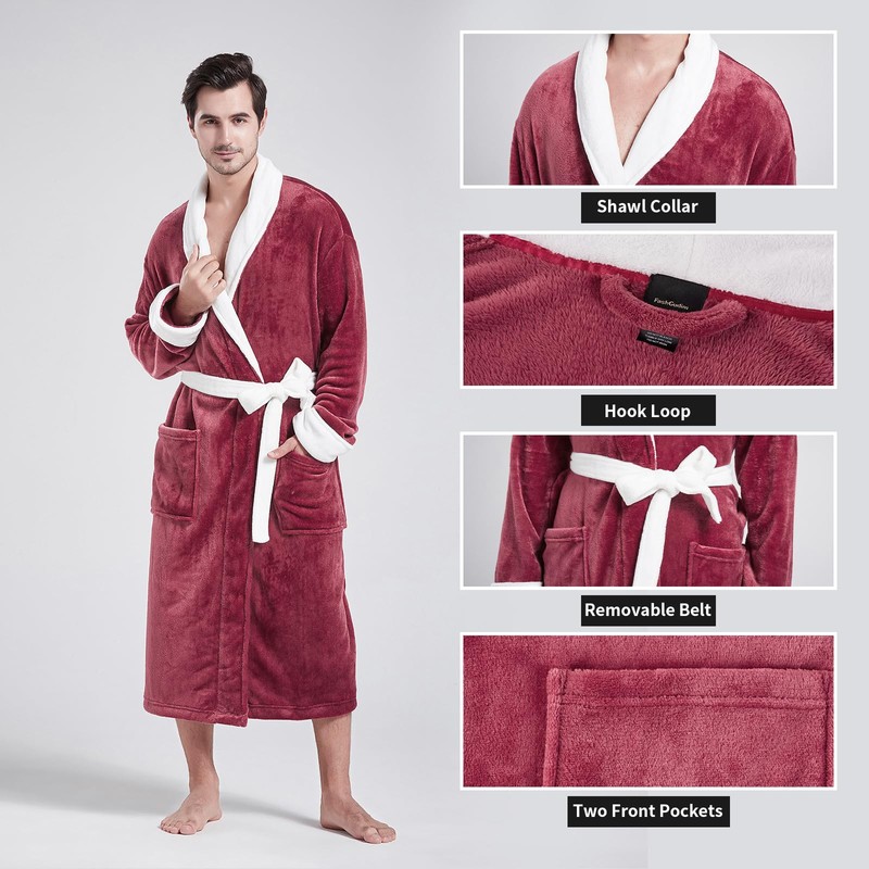 - 【Inner and Outer Ties Closure】FashGudim mens fleece robes have ribbon belt ties inside and removable belt ties outside to prevent your bathrobe from slipping open when you lie down or sit down. It can provide better protection of your privacy, so that you do not have to worry about any activities.