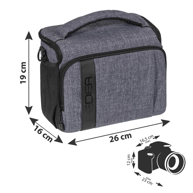 - External dimensions of camera case: 26 x 19 x 16 cm (W x H x D); interior dimensions of camera compartment: 23 x 16.5 x 12 cm (W x H x D)