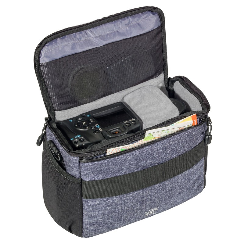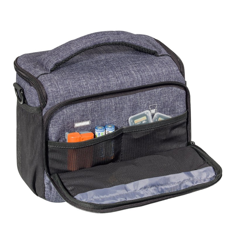 - Practical division in the camera bag thanks to various compartments: 1 x main compartment (with 2 variable dividers), 5 x additional compartments for accessories and a belt holder