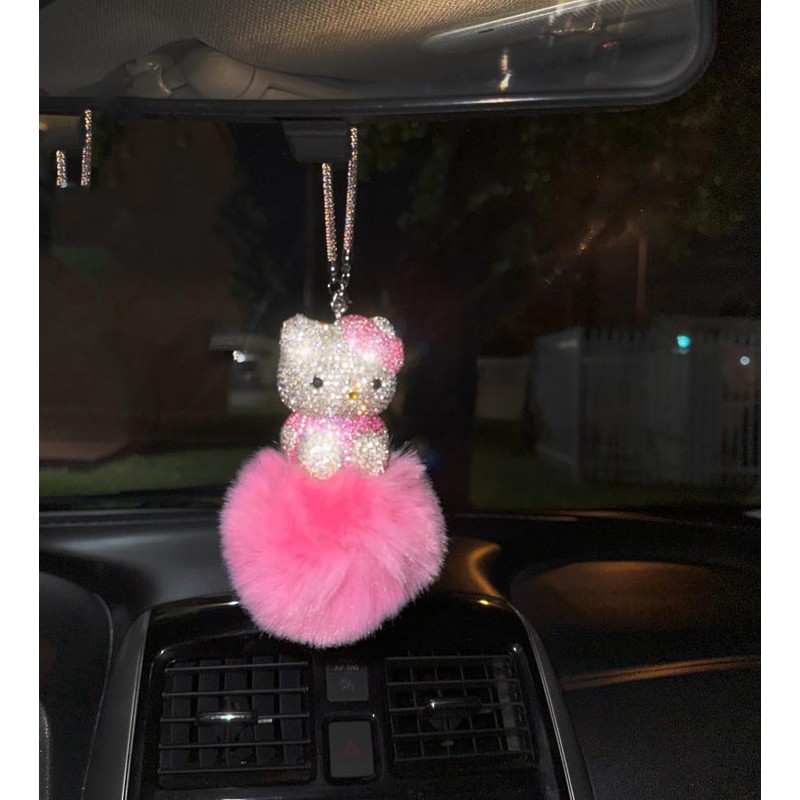 Fashion Car Ultra Bling Kitty Rearview Accessory Shiny Rhinestone Especially Bling Universal Diamond Extra Bright Ice (Pink Hot)