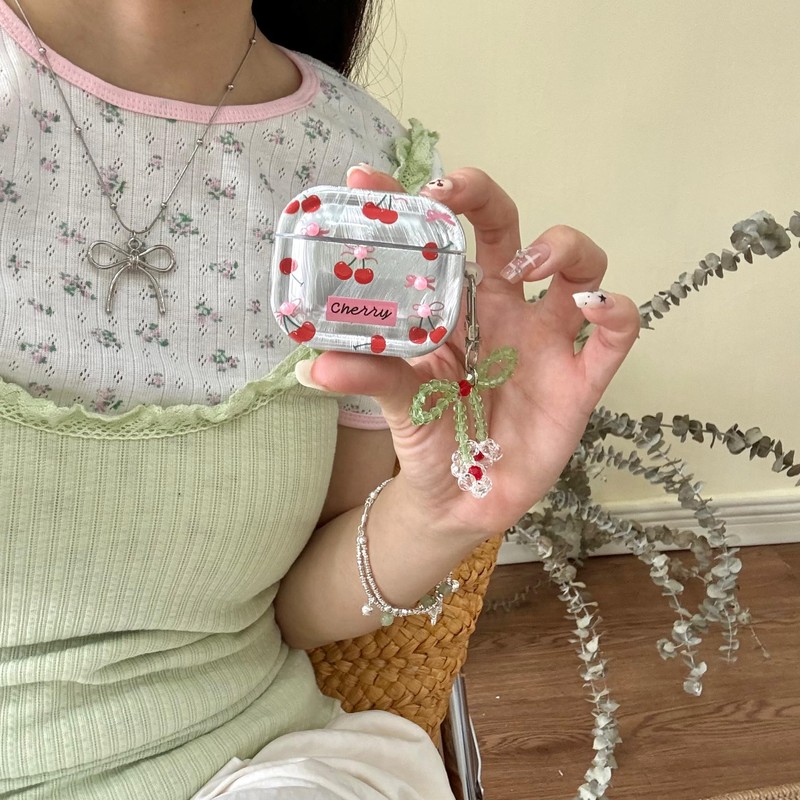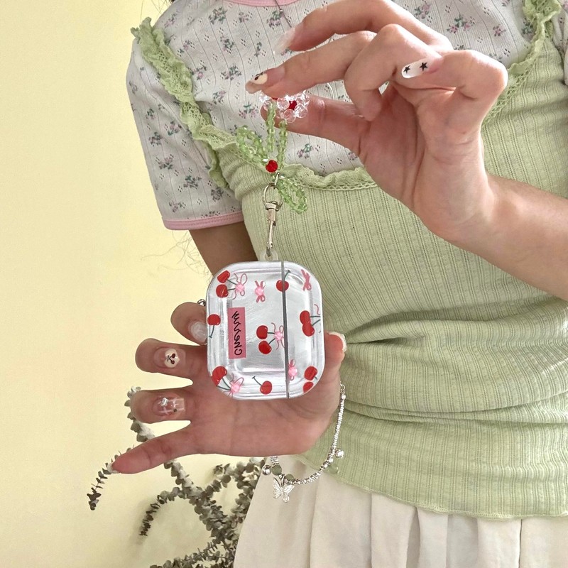 Fashion Electroplated Cherry Decoration Pattern Case with Pendant for AirPods 4 Cover Case for Women Men for AirPods 4