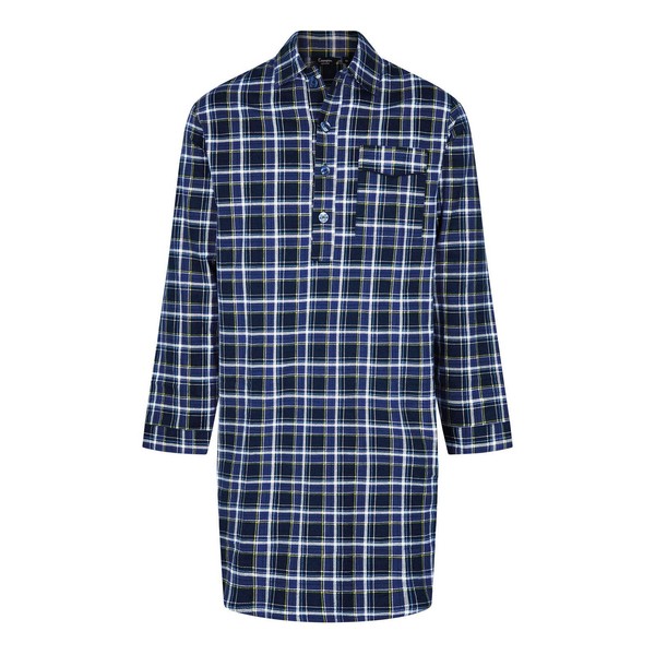 Fashion Group New Men's Brushed Cotton Flannelette Checked Button Up Comfortable and Warm Nightshirt PJ (Navy Check, 2XL)