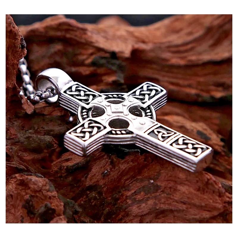 Fashion Jewelry Big CROSS CELTIC KNOT IRISH FAITH PRAY Pendant On 22" 925 plate Silver chain men