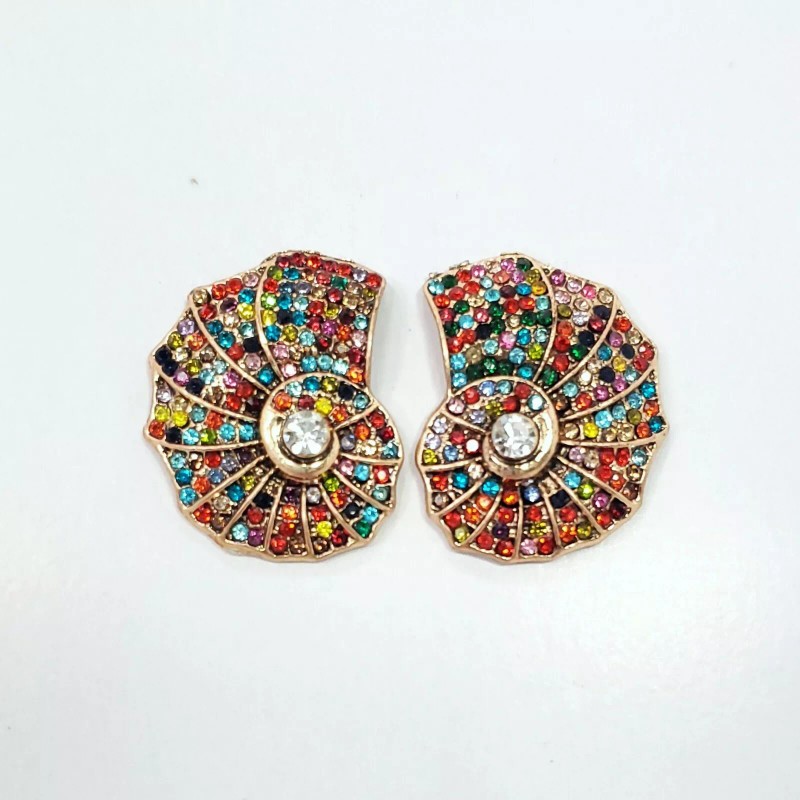 Fashion Jewelry E0522 Boho Multi Color Rhinestones Deco Shell Conch Shape Stud Style Earrings