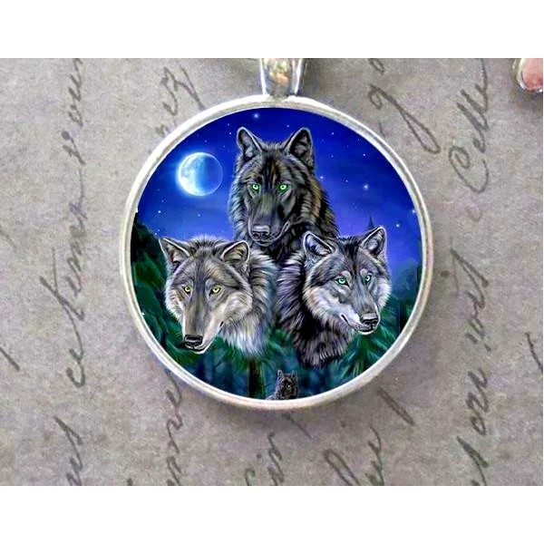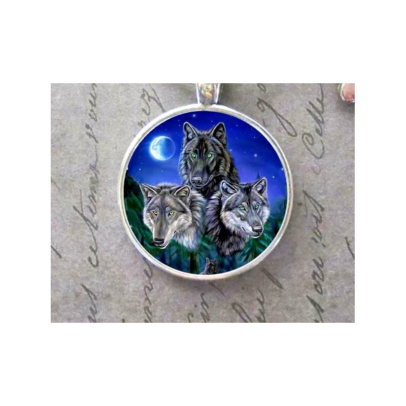 Fashion Jewelry HEAD EYE MOON WILD WOLVES ANIMAL pendant 22" Sterling 925 Silver plated necklace
