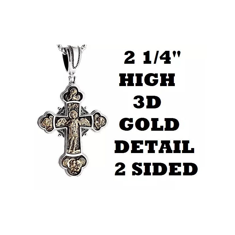 Fashion Jewelry Large ST MICHAEL CROSS FAITH Pendant On 26" 925 Silver Plated...
