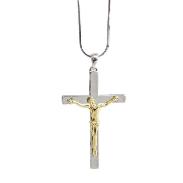 Fashion Jewelry ~ Two-tone Jesus on Cross Pendant Necklace for Women Casual