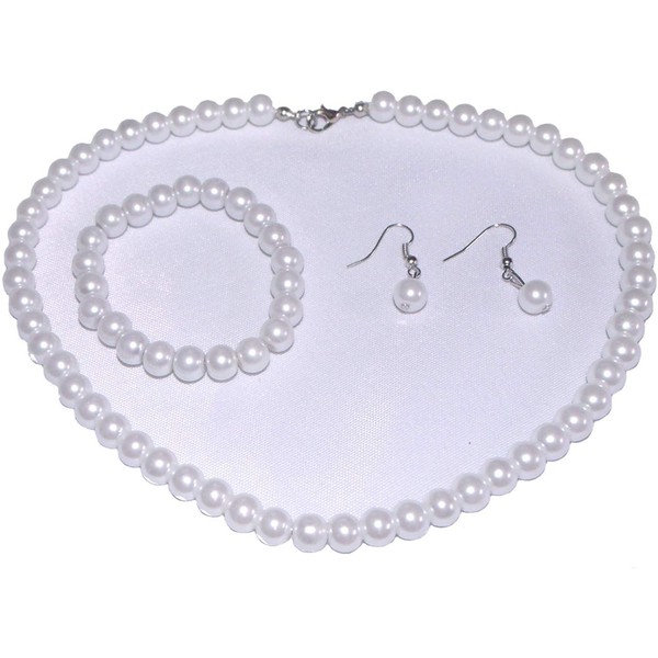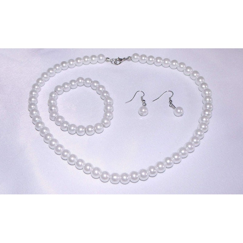Fashion Jewelry ~ White Faux Pearls Necklace Earrings and Bracelet Set for Women Casual or Formal