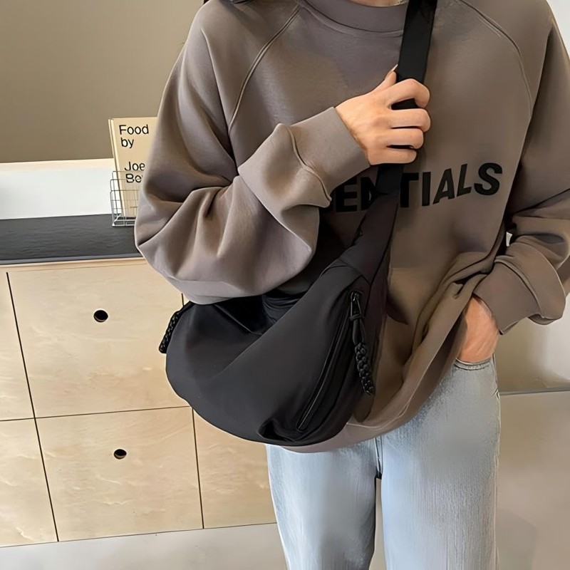 Fashion Plain Color Nylon Crossbody Bag For Women, Slouchy Dumpling and Multi-Pocket Sling Bag, New Crossbody Bag (Black)