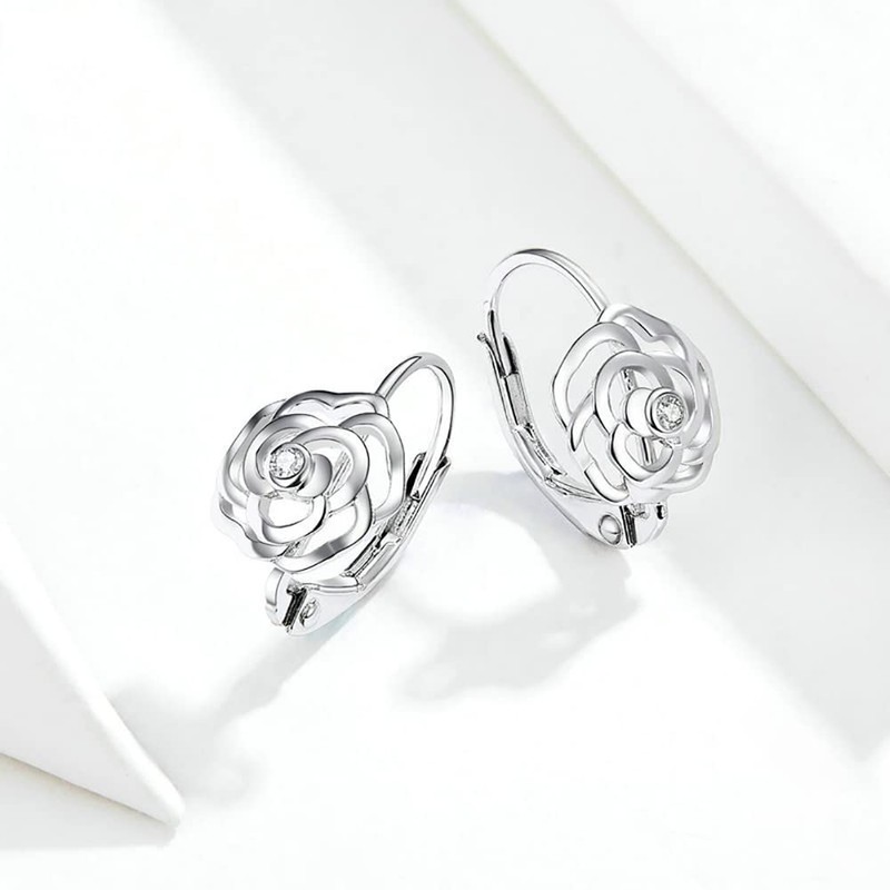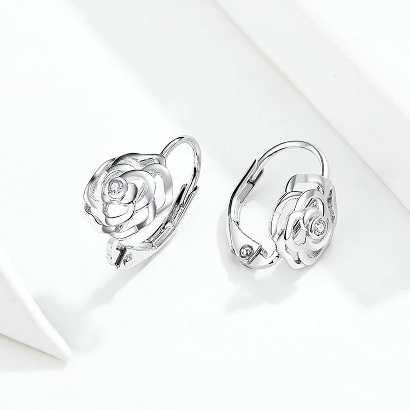 Fashion Rose Flower Sterling Silver CZ Filigree Small Hoop Earrings for Women Girls Minimalist Sleeper Cartilage Tiny Leverback Studs Huggie Hinged Hoops Birthday Cute Jewelry Gifts