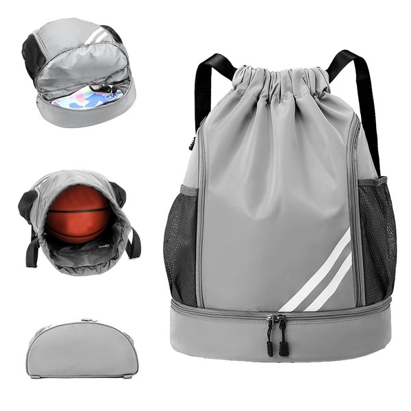 Fashion Sports Backpacks, Large Capacity Drawstring Gym Bag, Waterproof Backpack with Bottom Compartment and Wide Drawstring, Small Bag Backpack with Inner Pocket, Outer Pocket,Gray
