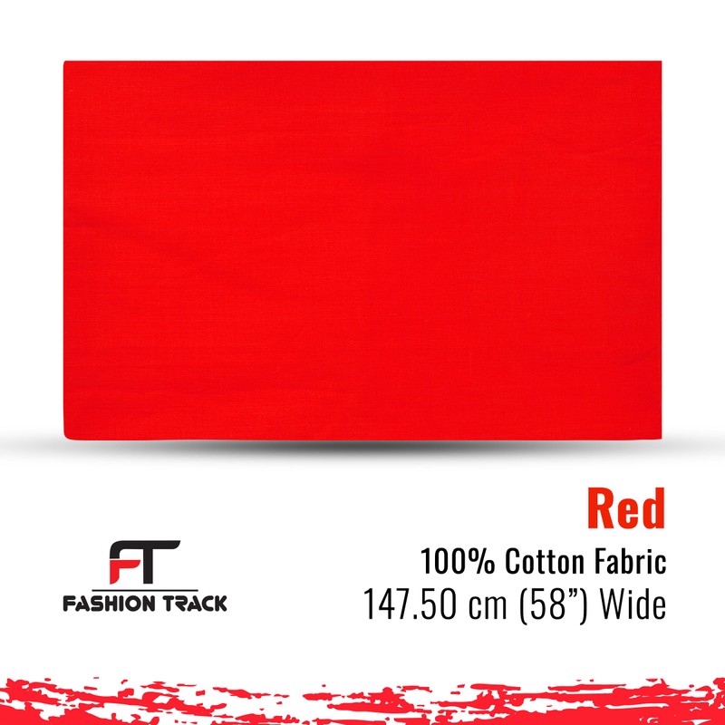 Fashion Track Red Fabric Cotton by The Metre UK - 58 Inches / 147.5 cm Wide - 100% Cotton Fabric Plain - 60 Square - Available in 20 Colours and 5 Sizes (1 Metre, Red)