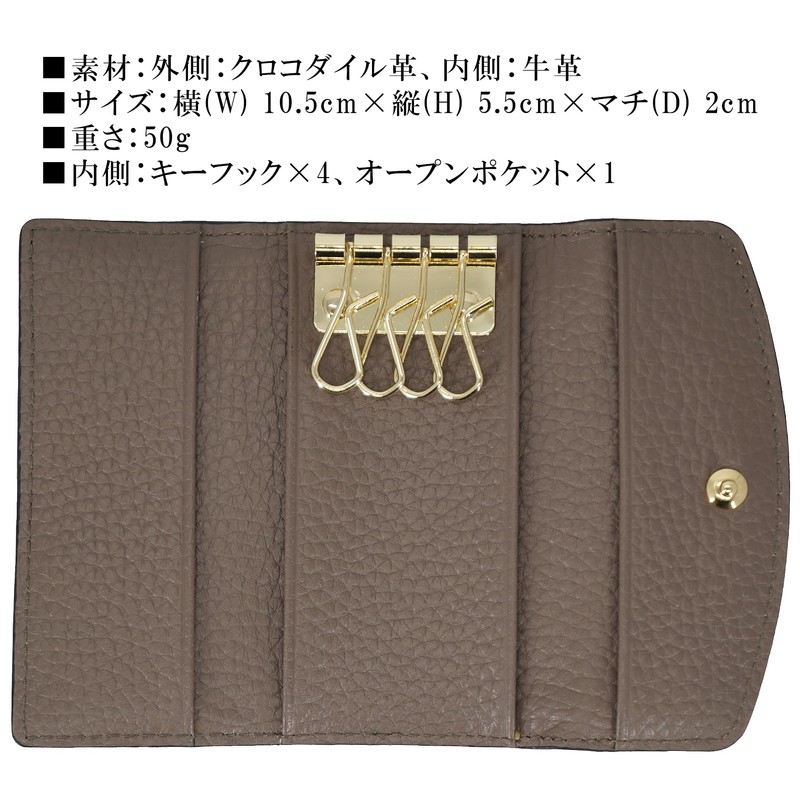 - This is a 4-row key case made of high quality crocodile leather. This is a luxurious accessory made of high-quality materials. The inside is made of durable bicarat cowhide leather. Comes with a gift box, making it a perfect gift. Crocodile, known as leather gem. The back of the raw leather material has a characteristic raised ridge that is called a hornback. The wild and unique expression is attractive. The protrusion of the crocodile tail is exactly the real crocodile. This luxurious key case also comes with a card slot