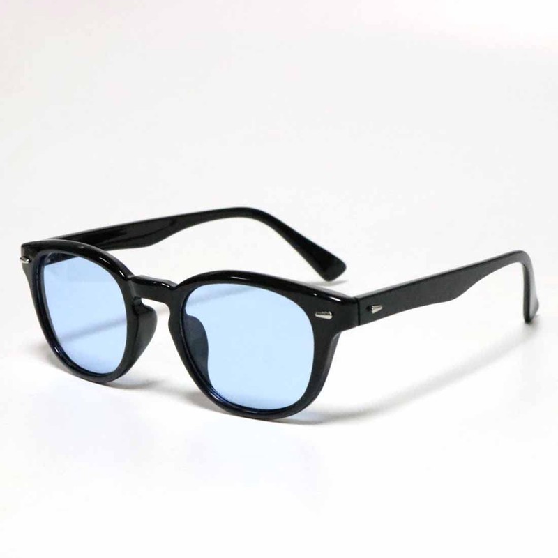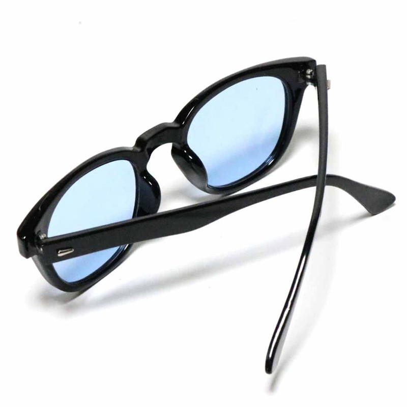 [FashionBerry] クロ×ライトブルー ウェリントン型 黒縁メガネ サングラス 2WAY仕様 UVカット クリアレンズ カラーレンズ 軽量フレーム メンズ レディース兼用 伊達メガネ風 おしゃれ フェイクメガネ ドライブ 旅行 紫外線対策 1050541-F-478