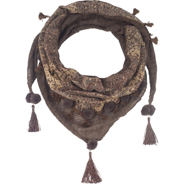 fashionchimp Women's Scarf with Decorative Tassels and Pattern Mix Embroidery Fringe Scarf Triangle Scarf, Pattern-Brown