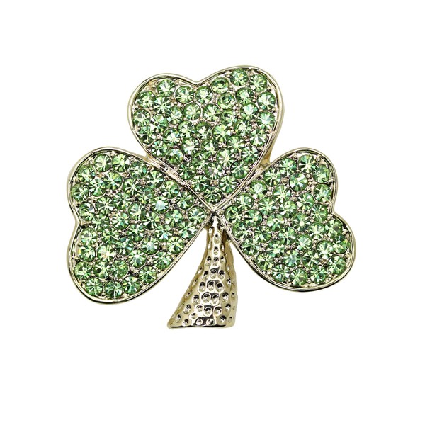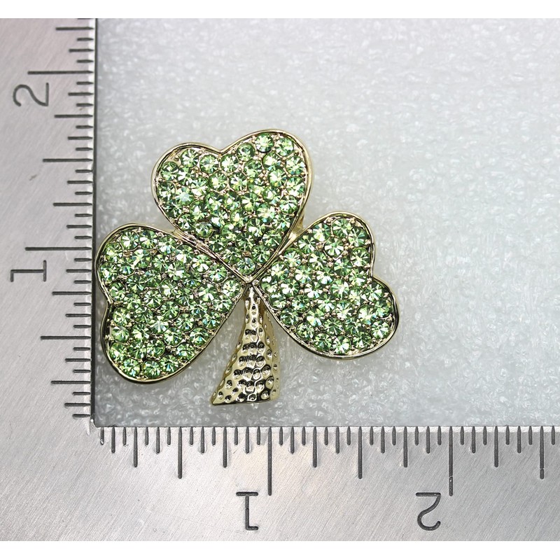 Faship Green Crystal Shamrock Clover 3 Leaf Pin Brooch St. Patrick's Day - Pe...
