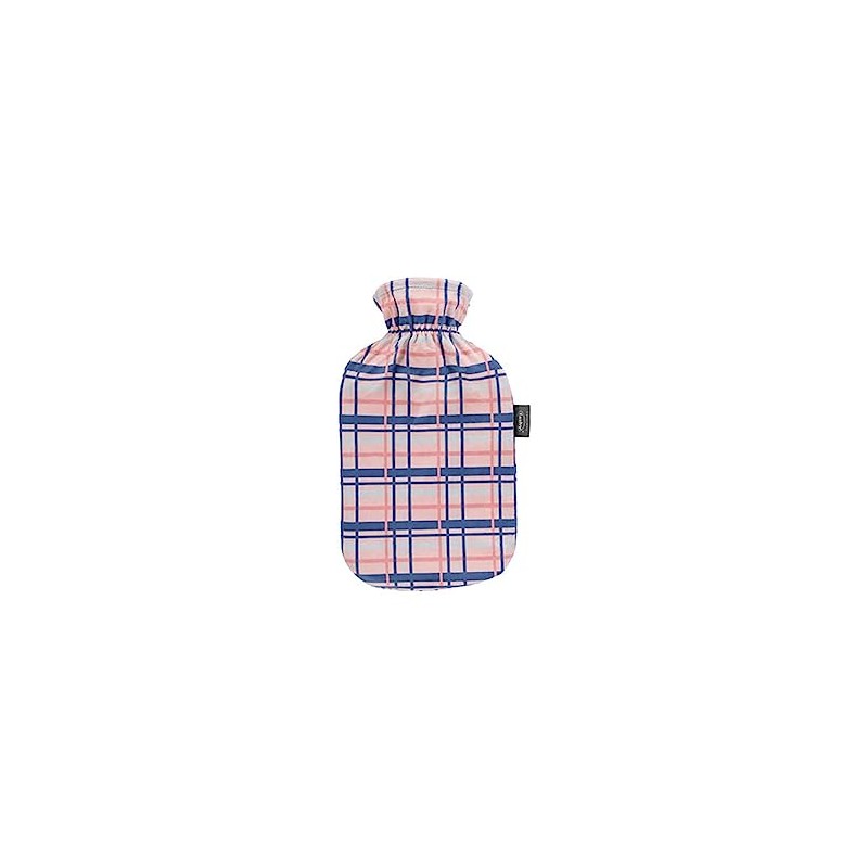 Fashy Hot Water Bottle with Fleece Cover in Checked Design, Apricot, 2.0 L