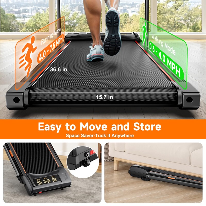 • 【Versatile Manual Incline & Wide Speed Range】: Experience a challenging 6% manual incline on this walking pad treadmill for targeted muscle activation. Enjoy flexible workouts with speeds from 0.6 MPH (perfect for under desk treadmill use) up to 7.5 MPH for light jogging. The Fasion Trek Run treadmill supports users up to 300 lbs, making it ideal fitness equipment for various intensity levels whether used as a mini treadmill, walking treadmill, or portable treadmill.